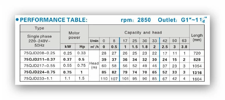 - Modell: Tiefbrunnenpumpe 75QJD217-0,55