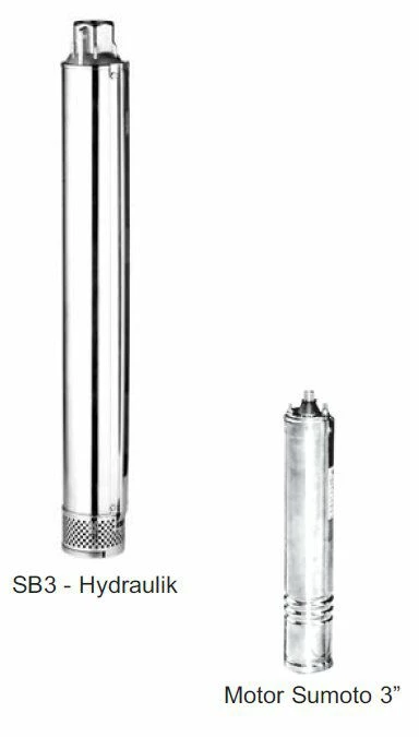 - SB3 (3~): mehrstufige Unterwasserpumpe mit Motor inclusive 1,75 m-Kurzkabel, unmontiert