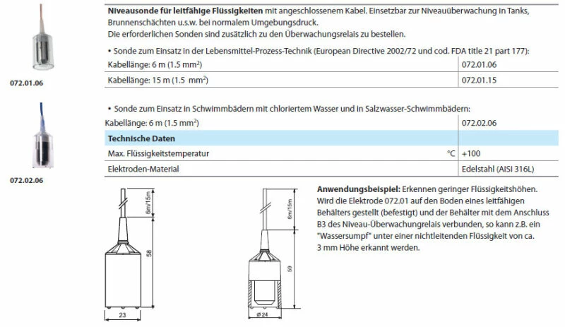 | Kategorie: | Schwimmerschalter und Niveau-Sonden |