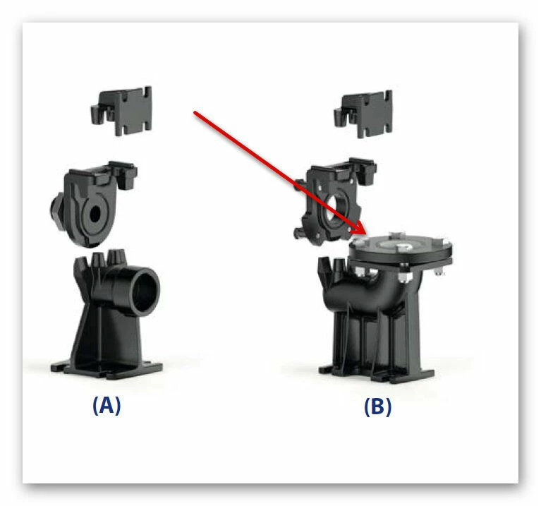 - Gleitführung (mit Ringmutter und Dichtung bei TR 0.75, TR 0.9, TR 1.1, TR 1.3, mit Schrauben und Dichtung bei TR 1.5 und TR 2.2)