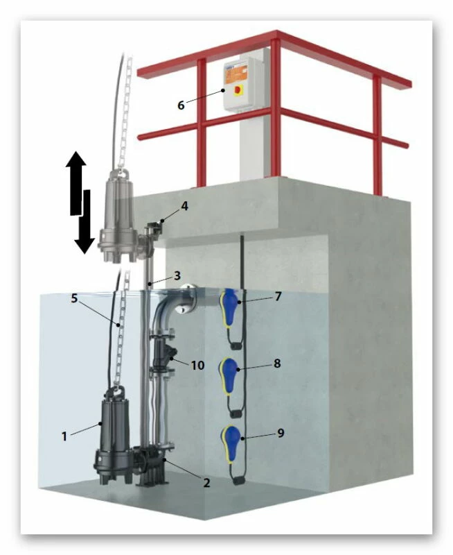 B) VERTIKALE FÖRDERUNG MIT ¾” FÜHRUNGSROHR