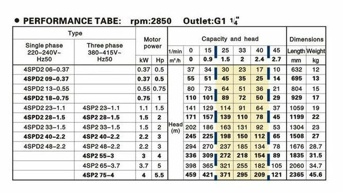 - Daten: Modell: 4 Zoll Tiefbrunnenpumpe 4SPD2 13-0,55