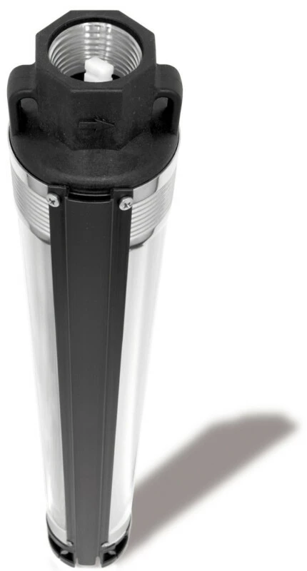 Der Pumpenschutz – DRP ist eine innovative elektronische Vorrichtung um die Unterwasserpumpe optimal vor dem Trockenlauf zu schützen. Zusätzlich schützt es den Motor der Tiefbrunnenpumpe auch vor dem Durchbrennen bei wiederholten Starts und Stops. Der DRP ist bereits einsatzfähig, im Motorverbindungskabel integriert und es bedarf keiner weiteren Installation. Bei Wassermangel schaltet der DRP die Pumpe umgehend ab, wenn der Wasserstand unterhalb des DRP sinkt. Die Tiefbrunnenpumpe wird nach kurzer Zeit automatisch wieder angeschaltet, sobald wieder Wasser in das Bohrloch einfliesst und der Wasserstand über den DRP steigt. Gegenüber den herkömmlichen Lösungen, werden keine weiteren Kabel, Sensoren und Schaltkästen benötigt. Der DRP wurde entwickelt und getestet, um die Unterwasserpumpe auch bei vorkommenden Wassermangel autonom arbeiten zu lassen. Bei wiederholtem An- und Abschalten der 4 Zoll Tiefbrunnenpumpe, wie auch bei Luftmangel im Druckkessel oder bei beschädigter Membran, wird der DRP die häufigen Starts und Stops erkennen und schaltet automatisch den Motor sofort ab. Der DRP kann durch einfaches Trennen vom Stromnetz neu eingestellt werden.