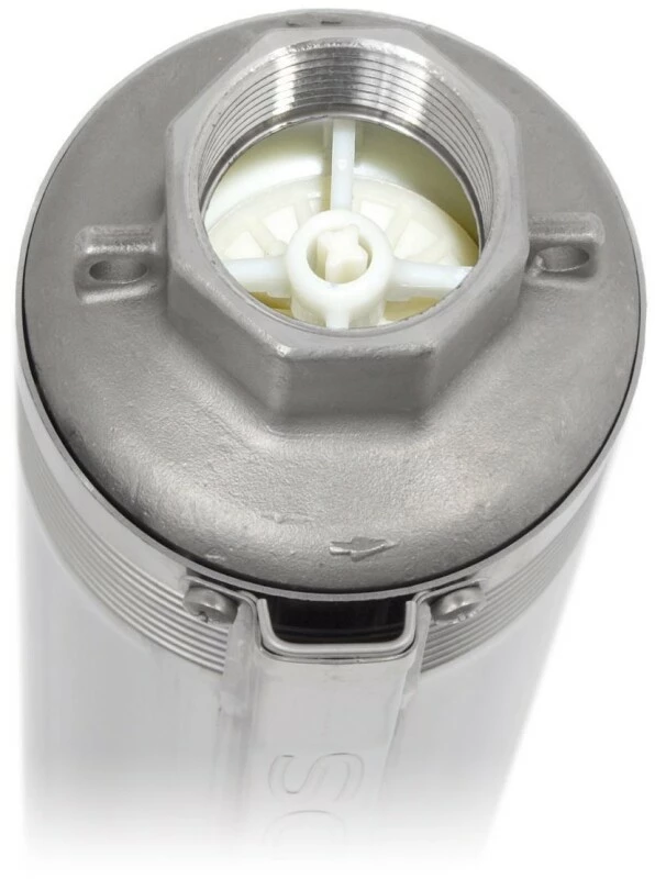 bei der Version in Technopolymer sind Anschluss, Verbindungsteile und Kabelabdeckung der Pumpenhydraulik in Technopolymer, einen äußerst widerstandsfähigen Kunststoff gefertigt.